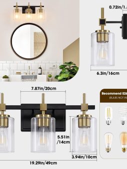 Introducing the Asnxcju 3-Light Black and Gold Bathroom Light Fixtures, the perfect addition to elevate the ambiance of your bathroom or living space. This exquisite vanity light features a stunning combination of black and gold finishes that add a touch of sophistication and elegance to any room. Crafted with textured glass shades, this modern vanity…